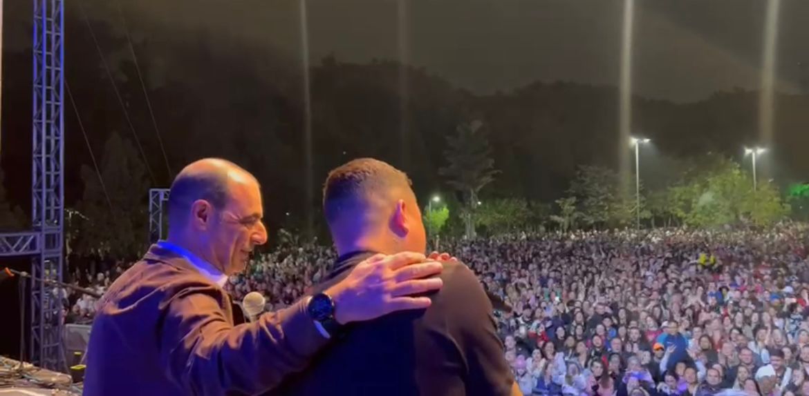 Auricchio foi até o palco e pediu para Felipe Arauj o cantar o tradicional “parabéns” para a cidade.
