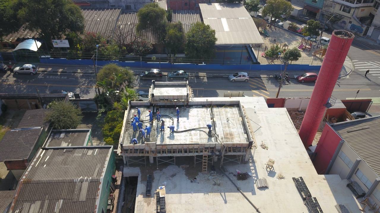 Nesta segunda-feira (29), as obras da Unidade de Pronto Atendimento (UPA) Paineiras, na região norte de Diadema, concluíram a etapa de concretagem da laje superior. No pavimento, serão instaladas duas casas de máquinas para abrigar os painéis de controle, as máquinas de ar condicionado central, reservatório de água e bombas.