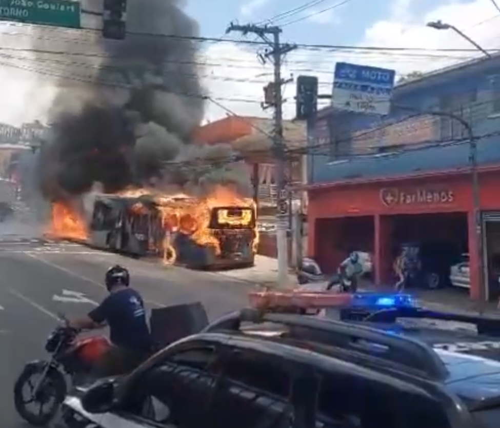 A ocorrência foi atendida pelo Corpo de Bombeiros. Vídeos divulgados pelo Diário do Transporte mostram o ônibus em chamas, que acabou colidindo com um poste.