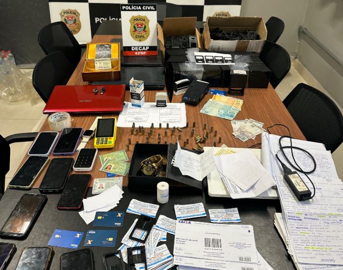 O caso está sendo registrado no 42º DP como associação criminosa, falsificação de documentos, posse ilegal de munição restrita, localização e apreensão de objeto e cumprimento de mandado de busca e apreensão.