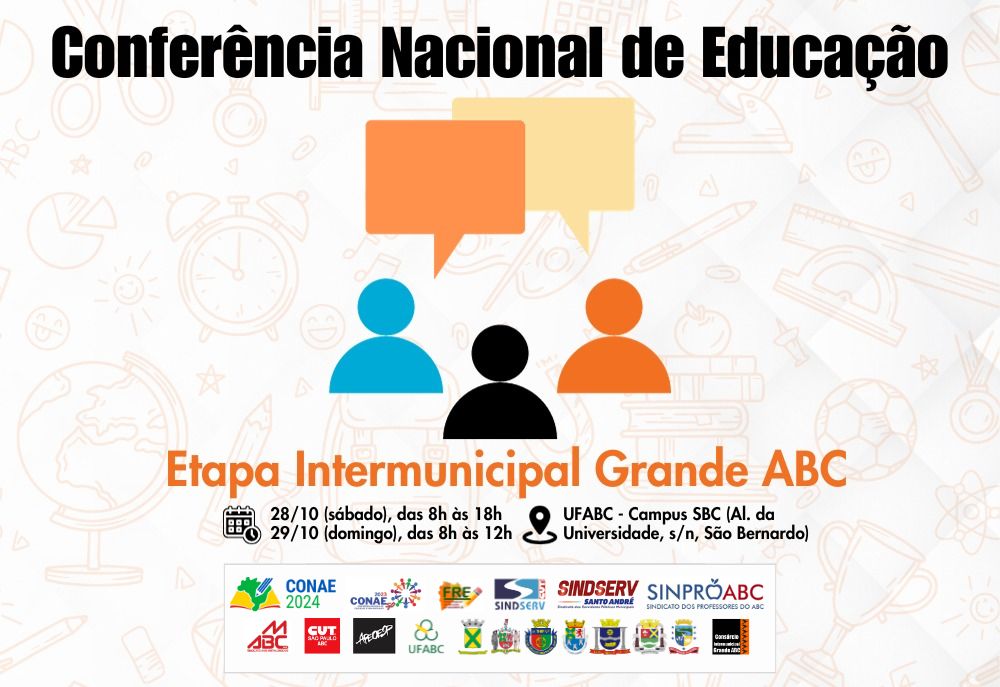 O ABC promove, neste fim de semana, a etapa intermunicipal da Conferência Nacional de Educação (Conae). O evento regional ocorre em 28 (sábado) e 29 outubro (domingo) no Campus São Bernardo do Campo da Universidade Federal do ABC (Alameda da Universidade, s/n, Anchieta).