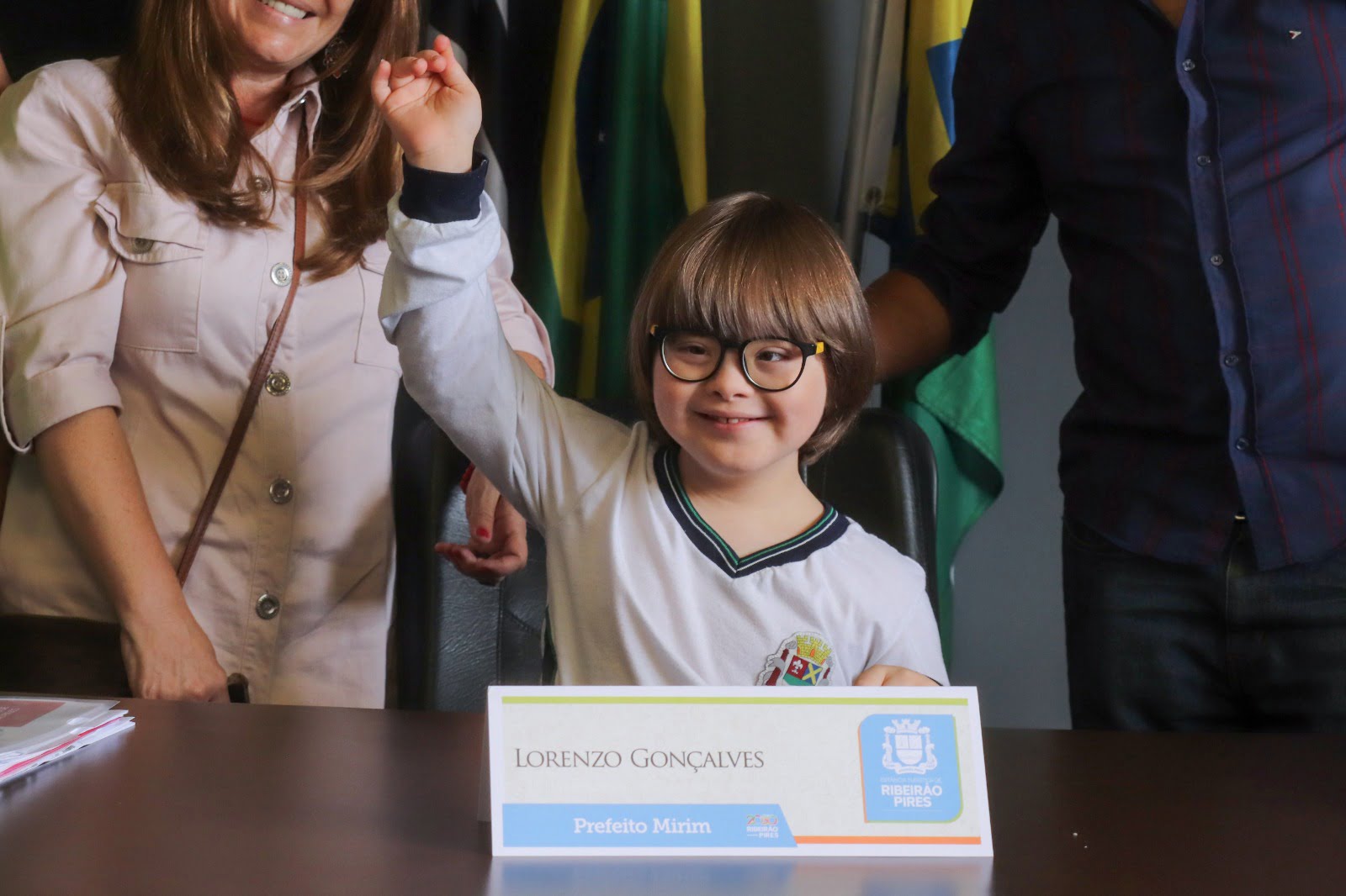 Como parte das ações que marcam o mês de conscientização sobre a Síndrome de Down, oito alunos da rede municipal de ensino de Ribeirão Pires foram recebidos nesta terça-feira (28) pelo prefeito Guto Volpi. Acompanhadas de familiares e profissionais das escolas, as crianças exploraram as instalações do gabinete, conheceram a equipe que trabalha no Paço e tiraram fotos com placas personalizadas de prefeita e prefeito mirim.