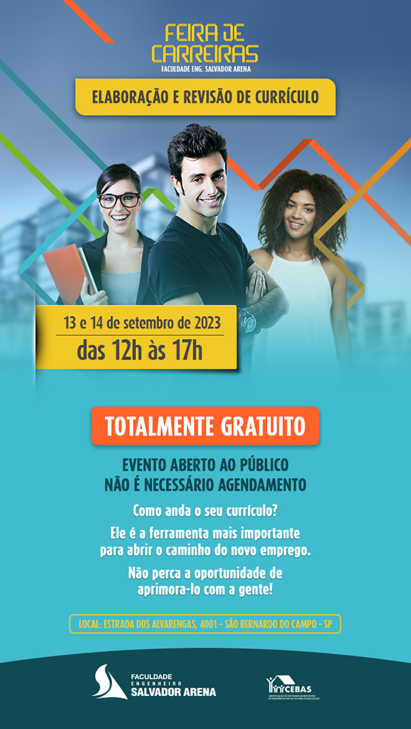Nesta quarta e quinta-feira (13 e 14), das 12h às 17h, a Faculdade Engenheiro Salvador Arena promoverá um mutirão para elaboração ou atualização de currículos, com o intuito de auxiliar quem está em busca de emprego ou de uma melhor oportunidade no mercado de trabalho.