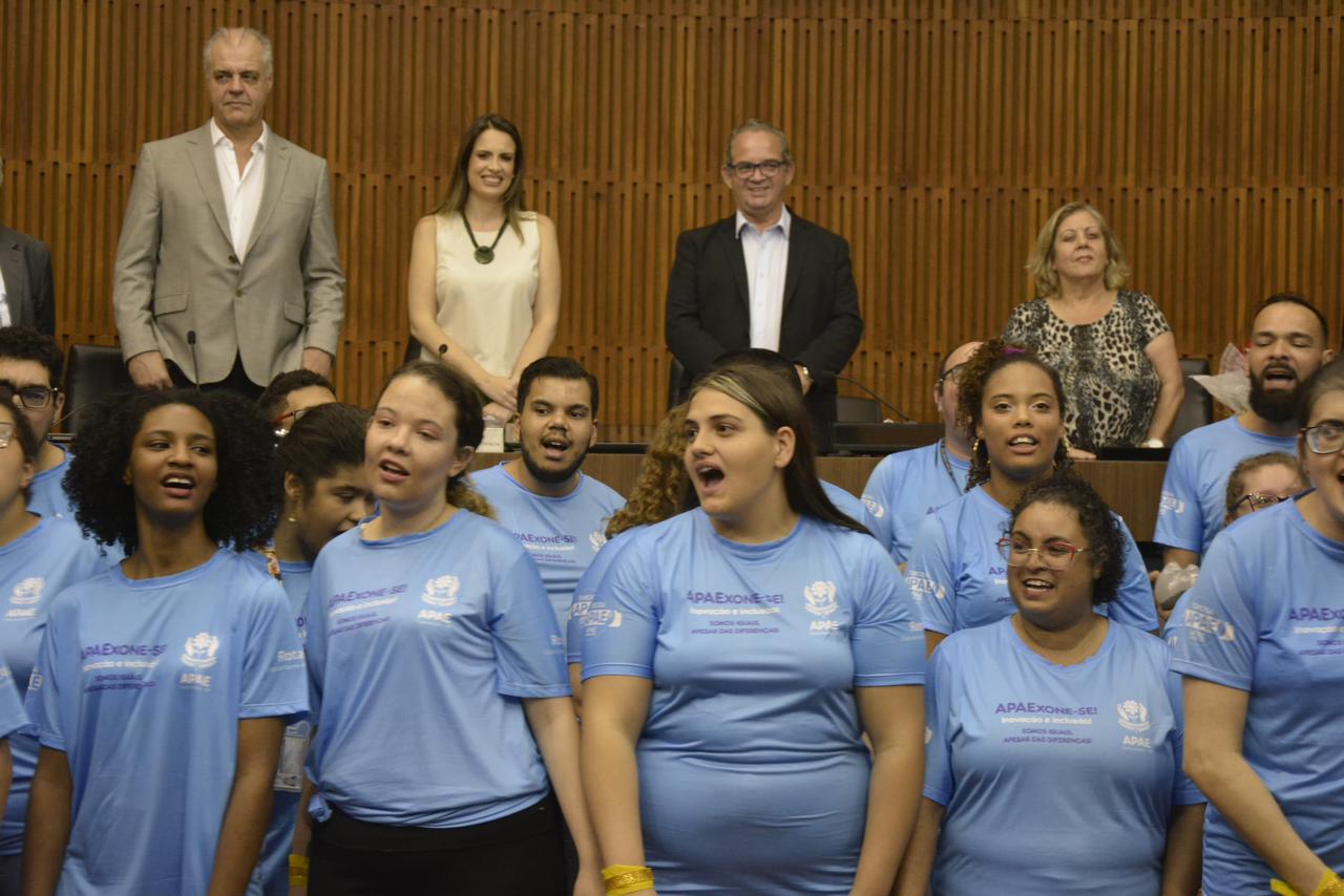 Organizada e presidida pela vereadora Dra. Ana Veterinária (União Brasil), a solenidade contou com participação especial do coral da APAE, de colaboradores, pais e membros da diretoria.