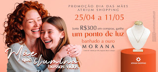 A campanha intitulada “Mãe que ilumina nossas vidas” acontece entre os dias 25/04 e 11/05 e poderá presentear os clientes com um mimo da loja de joias e acessórios Morana.