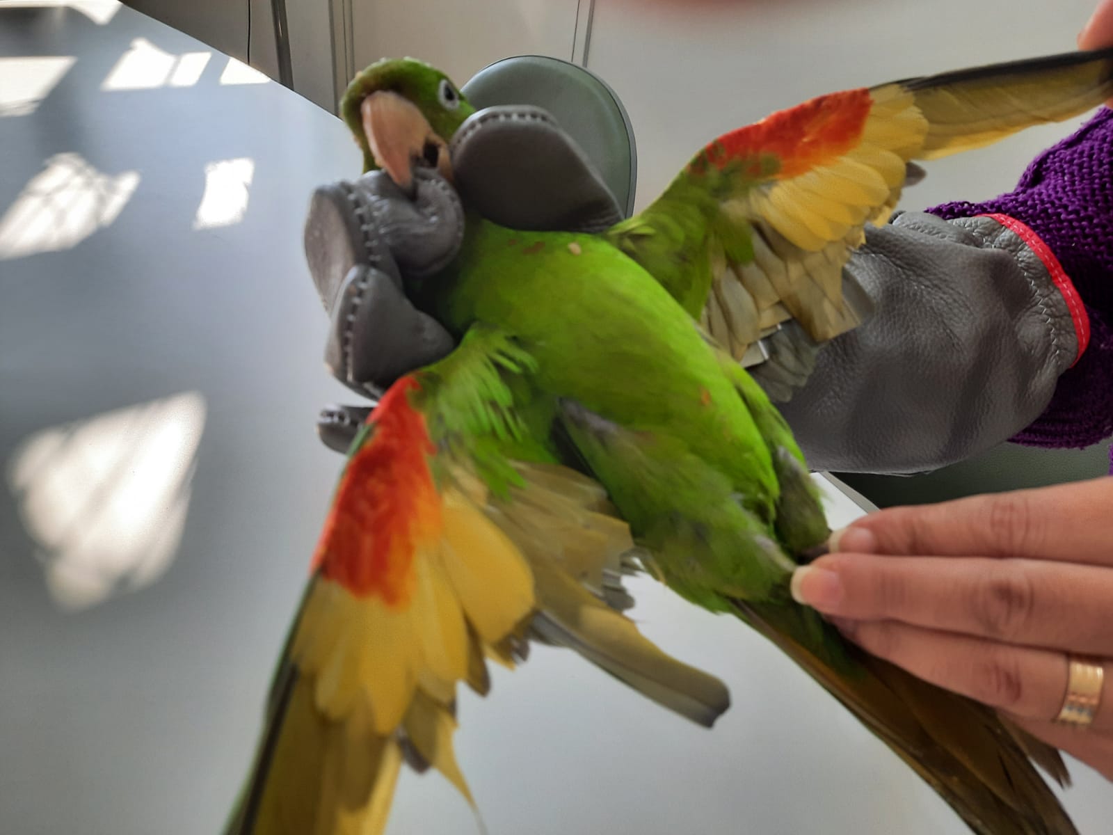 Um periquitão-maracanã foi encontrado na Vila Apiaí, em Santo André, com as asas cortadas. A espécie de nome científico Psittacara leucophtalmus foi resgatada pelo Departamento de Proteção e Bem-Estar Animal após denúncia de um munícipe.