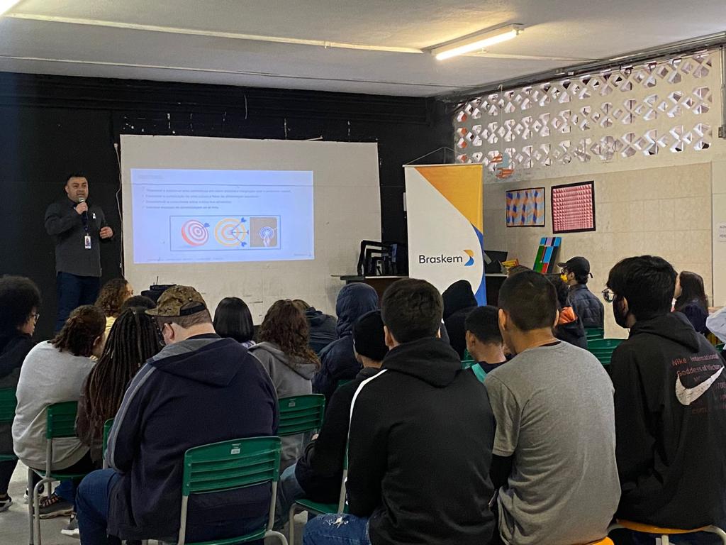 Nesta quinta-feira, (15), mais de 700 alunos da Escola Estadual Ivone Palma participaram de uma palestra com Rodrigo da Cunha Prado, Engenheiro de Saúde Segurança e Meio Ambiente da Braskem, que abordou questões sobre meio ambiente e a importância da educação ambiental.