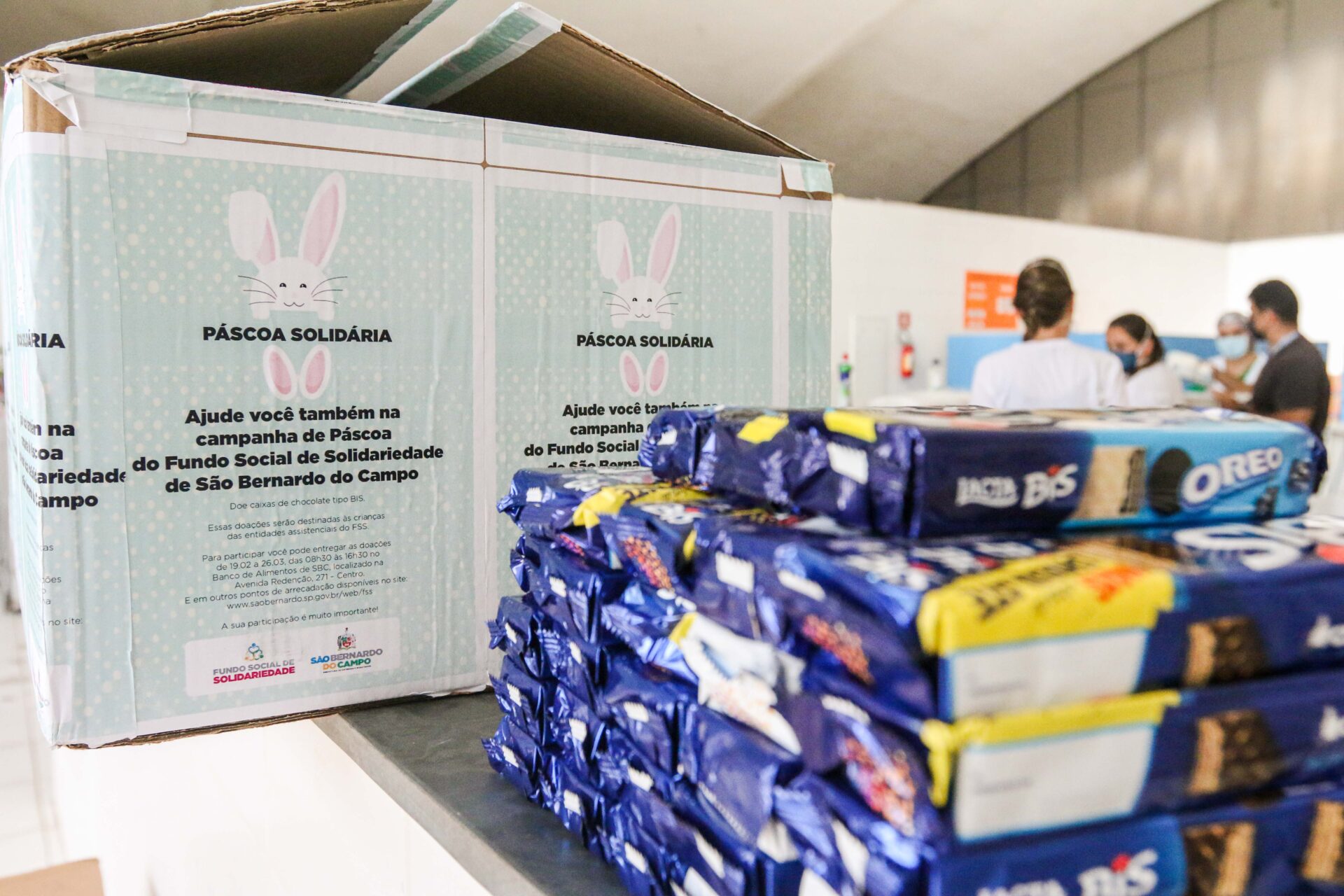 O Fundo Social de Solidariedade de São Bernardo arrecada, até o próximo dia 3 de abril, doações de caixas de chocolate para adoçar a Páscoa de jovens atendidos por instituições do terceiro setor. A meta da campanha Páscoa Solidária é atender cerca de 5.000 crianças e adolescentes, de 3 a 17 anos, assistidas pelas entidades do município. Iniciada no dia 17 de fevereiro, a ação recebe, preferencialmente, caixas fechadas com no mínimo 20 unidades de biscoitos wafer cobertos com chocolate.