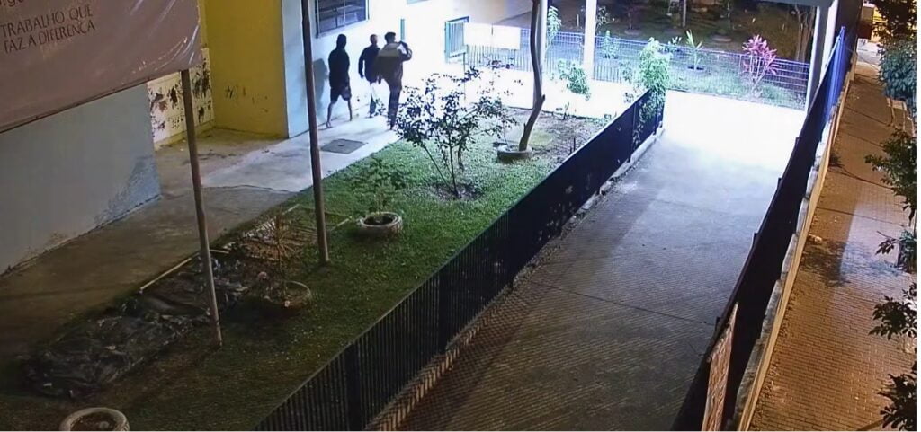 Era por volta das 23 horas, quando as imagens em alta resolução da Central mostraram os indivíduos pulando a grade que existe sobre o muro da escola. Imediatamente, duas viaturas foram acionadas e se dirigiram ao local. Quando chegaram na unidade escolar, os suspeitos já haviam se evadido.