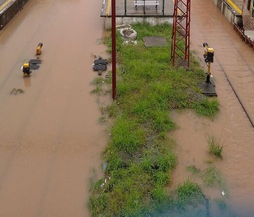Internautas do ABC em Off registraram o transbordamento do Rio Tamanduateí, que interditou a Avenida dos Estados na região do Parque João Ramalho e do Parque Jaçatuba, em Santo André, e o alagamento da Estação Mauá da CPTM.