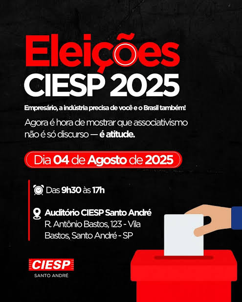 Nesta segunda-feira (4), das 9h30 às 17h, o Centro das Indústrias do Estado de São Paulo (CIESP) de Santo André realiza uma votação decisiva para o futuro da indústria, tanto no âmbito regional quanto estadual.