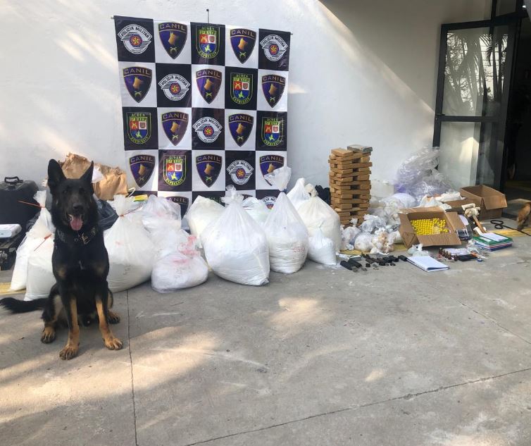 Colt, um cão policial do 5º Batalhão de Ações Especiais (Baep), ajudou a encontrar um imóvel que guardava mais de 400 quilos de cocaína em Paraisópolis, na zona sul de São Paulo, nesta sexta-feira (12).