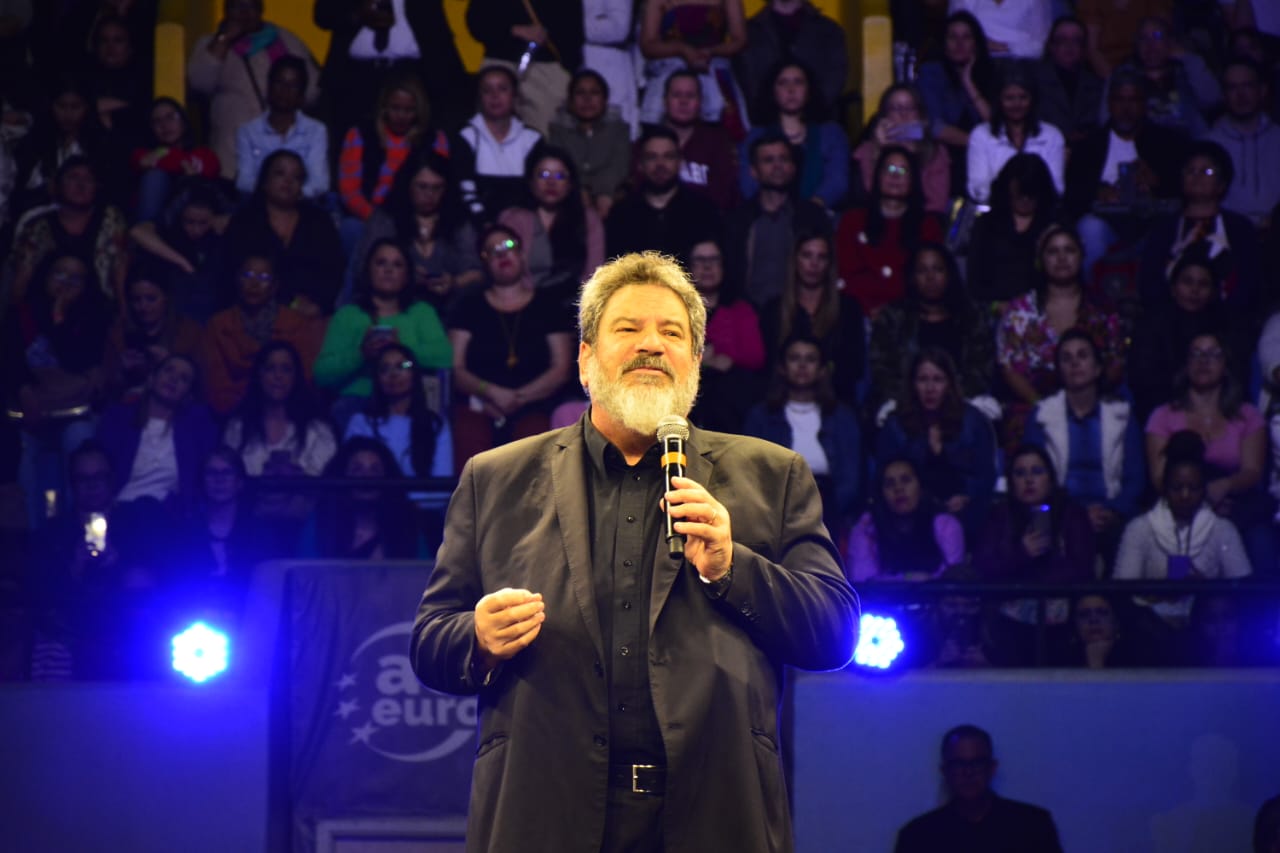 Cerca de 3,5 mil profissionais de ensino estiveram no Ginásio Laís Elena Aranha e acompanharam uma palestra do professor e filósofo Mario Sergio Cortella, com o tema “Dialogando com Cortella: o poder transformador da Educação”.