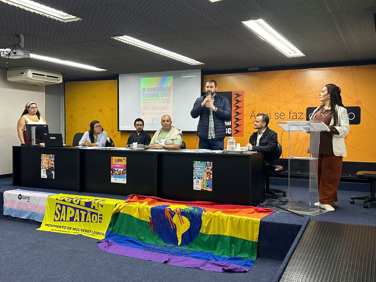O debate sobre políticas públicas para a garantia de direitos e a promoção da cidadania da comunidade LGBTQIA+ marcou a III Conferência Regional Livre dos Direitos das Pessoas LGBTQIA+ do ABC, realizada sábado (28) no Consórcio Intermunicipal.