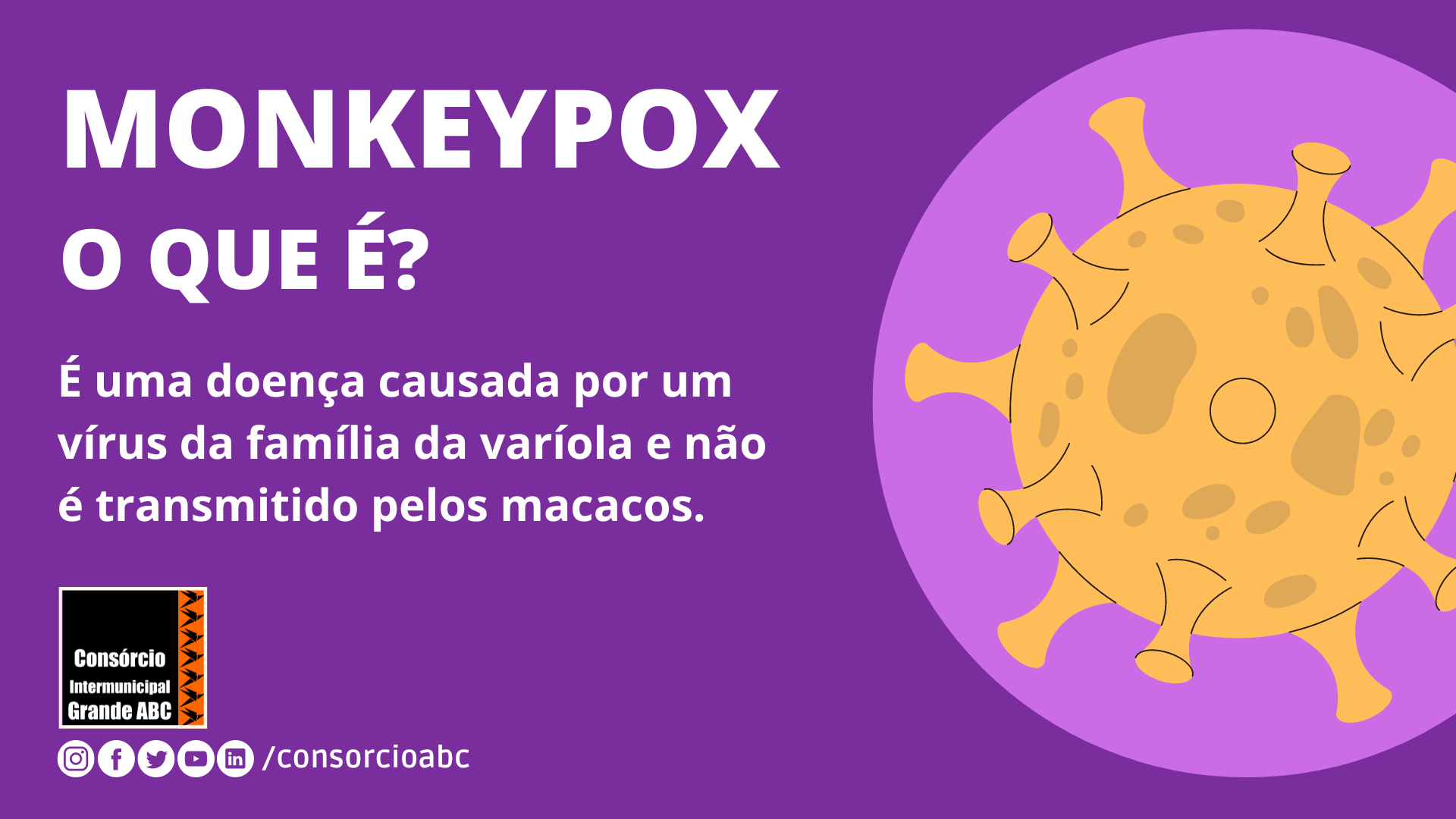 O Consórcio Intermunicipal Grande ABC lança uma campanha com orientações sobre a monkeypox. Por meio de peças informativas nos canais digitais da entidade regional, a iniciativa traz esclarecimentos sobre a doença e informações sobre as formas de prevenção.