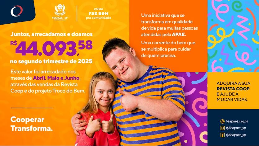 Somente no segundo trimestre de 2025, a rede repassou R$ 44.093,58 para a Federação das APAES do Estado de São Paulo (Feapaes-SP), instituição beneficente, sem fins lucrativos, que há três décadas atua em defesa dos direitos das pessoas com deficiência intelectual e/ou múltipla e do transtorno do espectro autista.
