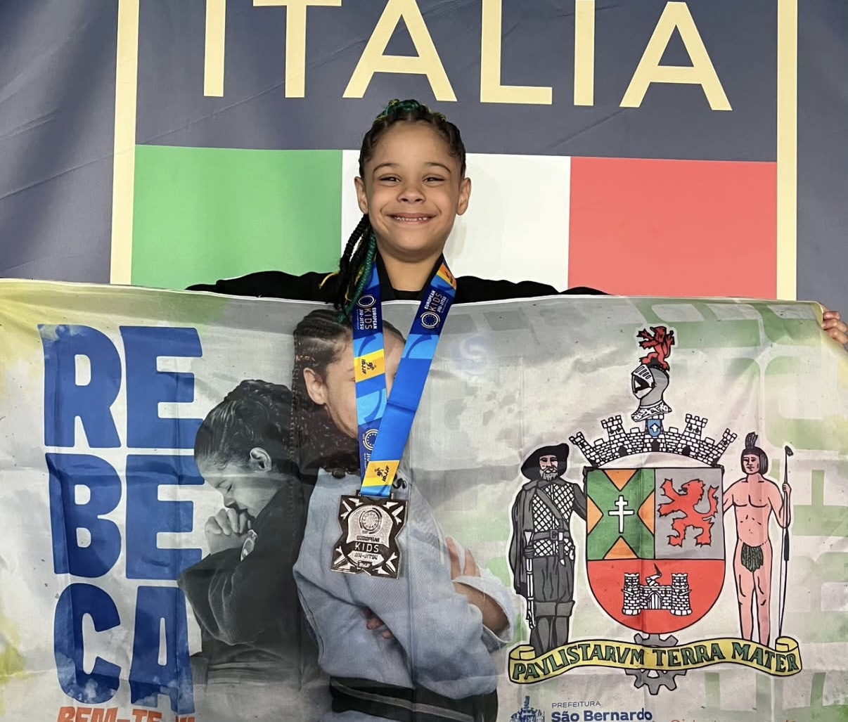 Com apenas 10 anos, Rebeca Bem Te Vi, de São Bernardo, foi medalha de prata no “Europeu Kids” de Jiu Jitsu.