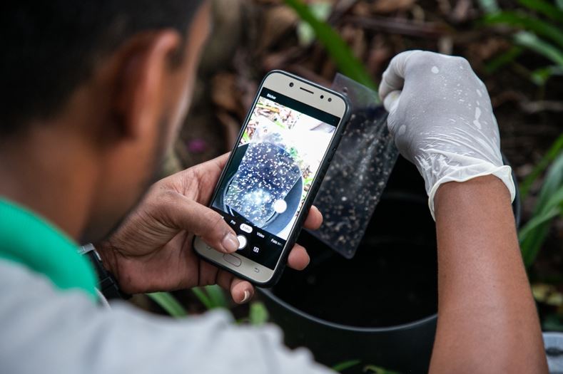 A ação terrestre tem o apoio do monitoramento aéreo, por drone operado pela GCM (Guarda Civil Municipal), que auxilia na identificação de locais com água parada, como calhas, caixas d’água destampadas e piscinas em estado de abandono.
