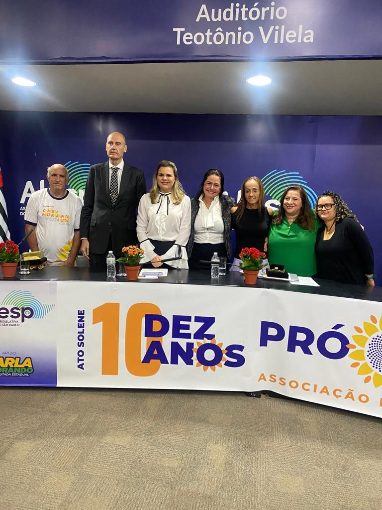 A deputada estadual Carla Morando presidiu ato solene, nesta segunda-feira (26), na Assembleia Legislativa do Estado de São Paulo, em comemoração aos 10 anos de fundação da Associação Pró-Cura da ELA- Esclerose Lateral Amiotrófica.