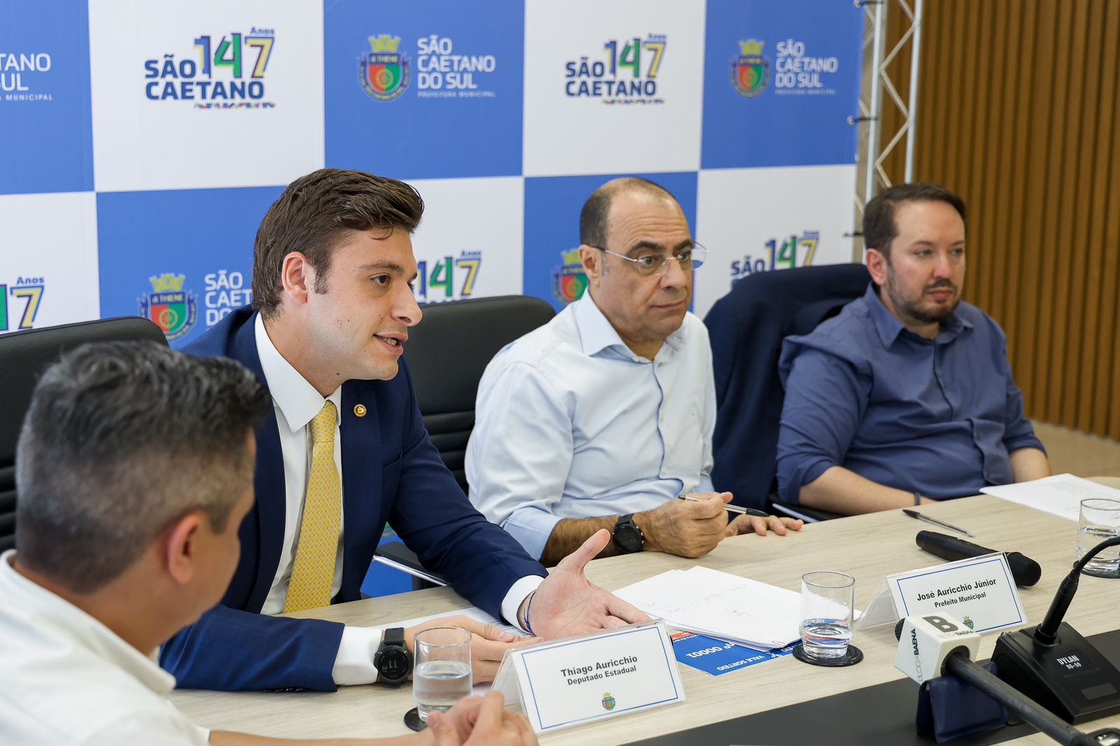 Em comemoração ao aniversário de 147 anos de São Caetano do Sul, o deputado estadual Thiago Auricchio prestou contas da sua atuação em defesa do munícipio ao lado do prefeito Auricchio e do reitor da USCS, Professor Leandro Prearo, esta semana.