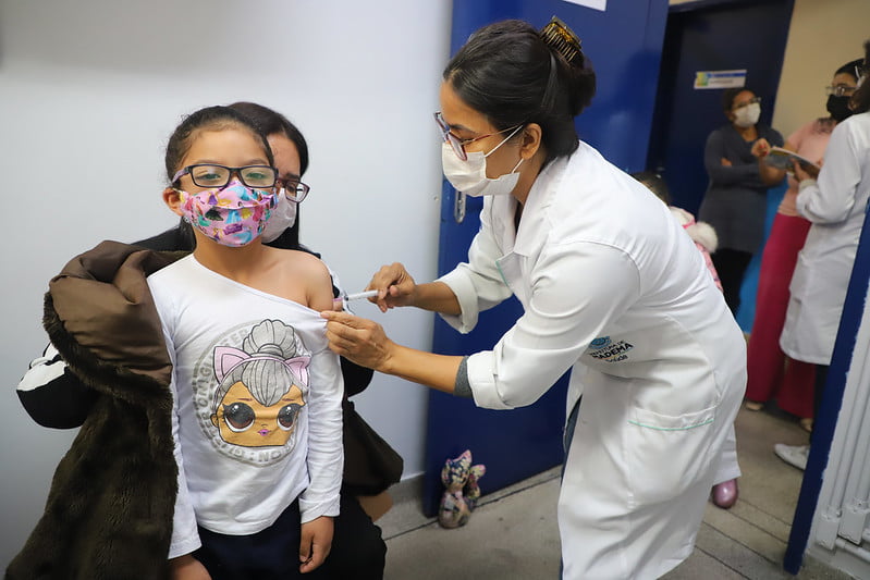 Outra vacina liberada para o público infantil, a partir de três anos de idade, é a vacina contra covid-19. O imunizante também é aplicado em crianças entre cinco e 11 anos de idade e pessoas com mais de 12 anos. Para receber as doses (D1, D2, D3, D4 e D5, de acordo com as regras para cada grupo) é importante ter em mãos documento de identidade com foto e número do CPF e comprovante de dose anterior (caso não seja a primeira dose). Apenas pessoas de 18 anos ou mais com alto grau de imunossupressão podem receber a quinta dose. Todos os imunossuprimidos devem apresentar a documentação que comprove a condição de saúde.