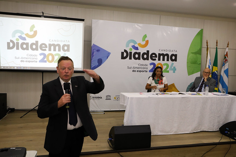O prefeito de Diadema, José de Filippi Junior, e a secretária municipal do Esporte, Luciana Avelino, apresentarem neste domingo (5) a Defesa Técnica de Dossiê das ações desenvolvidas para ser considerada a Cidade Sul Americana do Esporte 2024, de acordo com a Associação das Capitais e Cidades Europeias do Esporte (ACES).