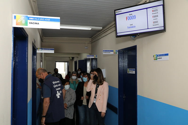 Com o avanço na qualificação do atendimento à saúde, as UBSs estão mais funcionais para população e trabalhadores, com totem, na entrada da UBS, para senha e pesquisa de satisfação, monitores para chamada de senha de consultas e outros atendimentos, além da padronização visual que facilita a identificação de salas e serviços disponíveis.