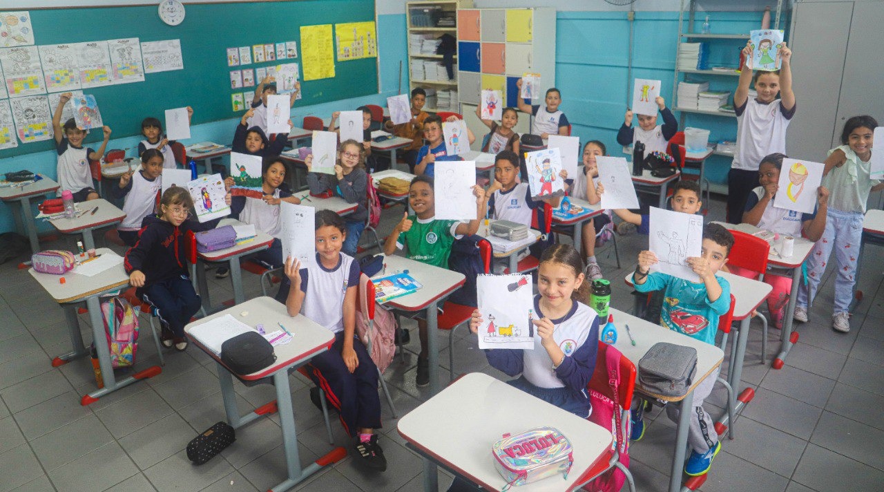 Risca, pinta, apaga, faz de novo. Aos alunos do 3º ano F da Emeb Mário Santa Lúcia, no Jardim Ruyce, em Diadema, não faltou empenho e preocupação na hora finalizar, nesta quarta (29/10), os desenhos que serão enviados ao concurso ‘Meu Olhar, Minha Arte’, promovido pela Secretaria de Educação. Não é para menos: as obras que forem selecionadas, por meio de votação popular, vão estampar mochilas e cadernos, parte do material escolar de 2026.