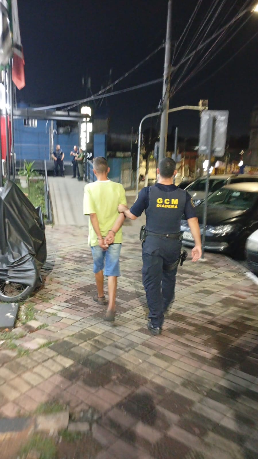 Após denúncia de um motociclista, uma equipe de área da Guarda Civil Municipal (GCM) de Diadema localizou e deteve indivíduo que praticou um furto no Mercado Oxxo, situado na avenida Sete de Setembro, região central.