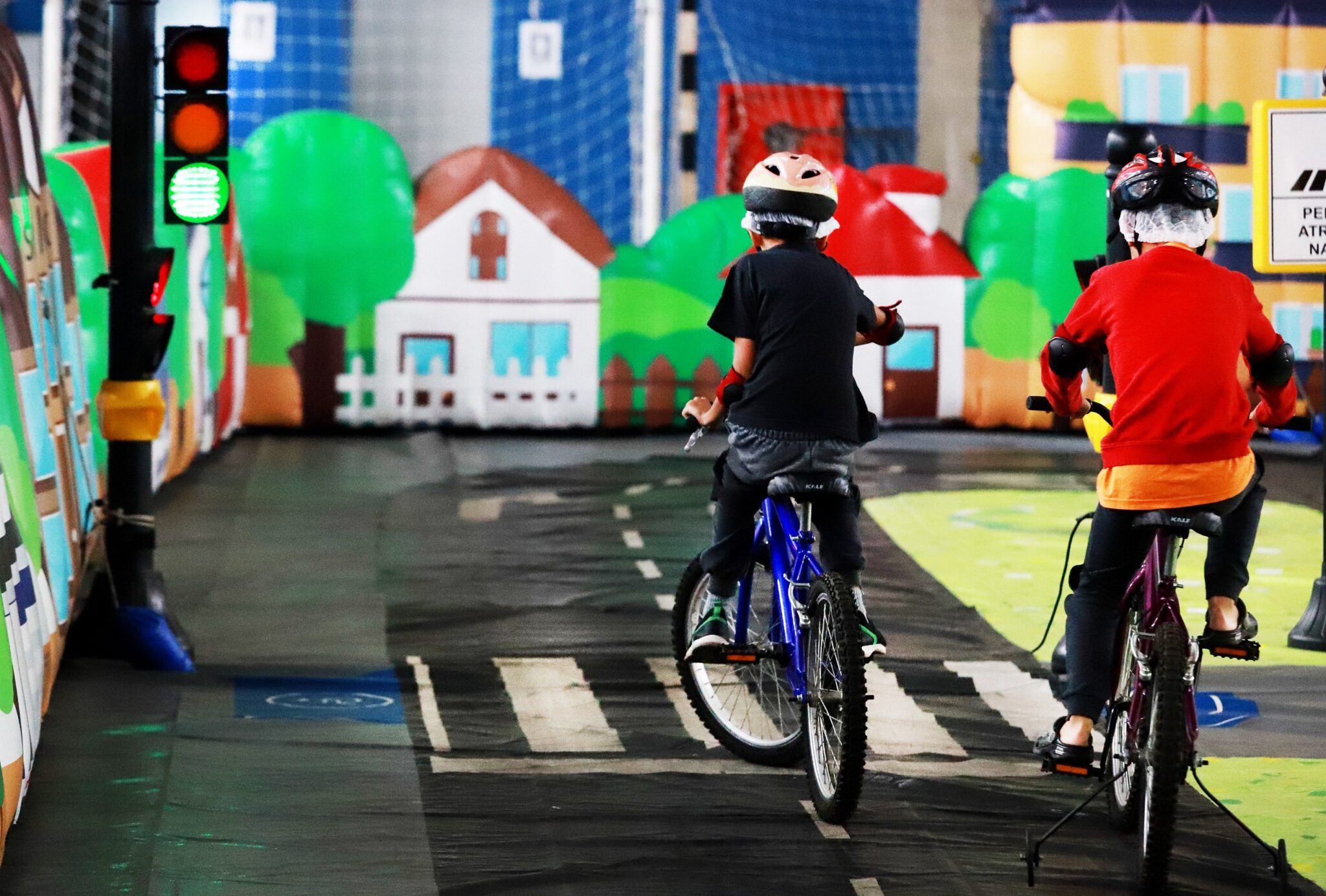 Nesse circuito, crianças de 3 a 12 anos percorrem as vias da minicidade com bicicletas, tendo sempre o cuidado de respeitar a sinalização, pedestres e os outros ciclistas.