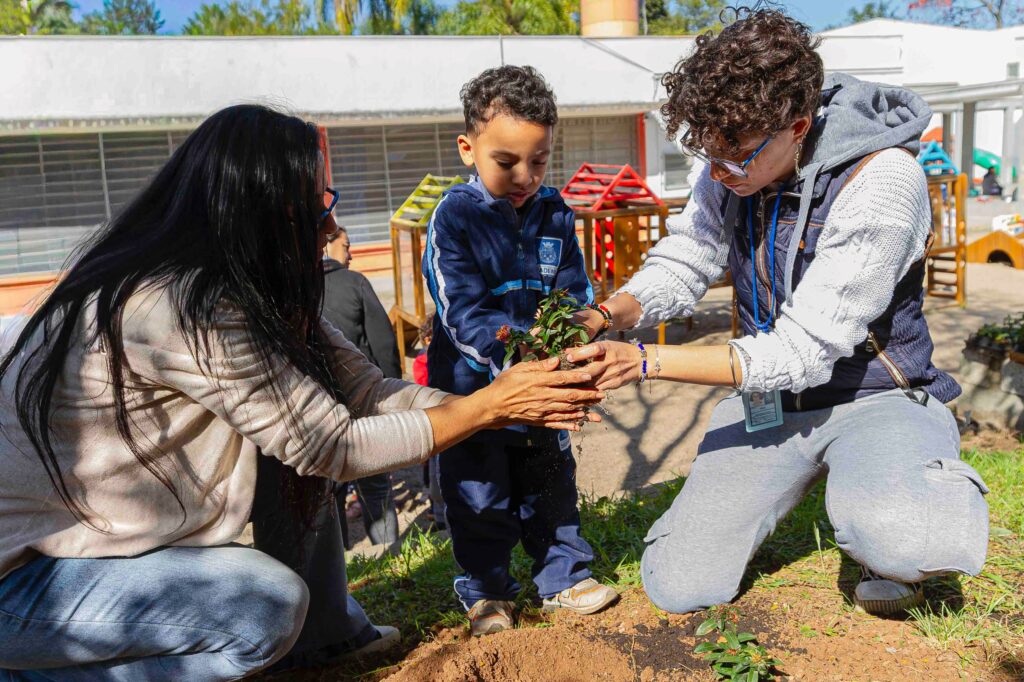 A diretora, Janete Batista, e a vice, Paola Uliana, participaram do plantio e explicaram que, embora a escola tenha uma grande área verde, a comunidade sentia falta de árvores frutíferas e ervas aromáticas, além da beleza, alegria e o colorido das flores.