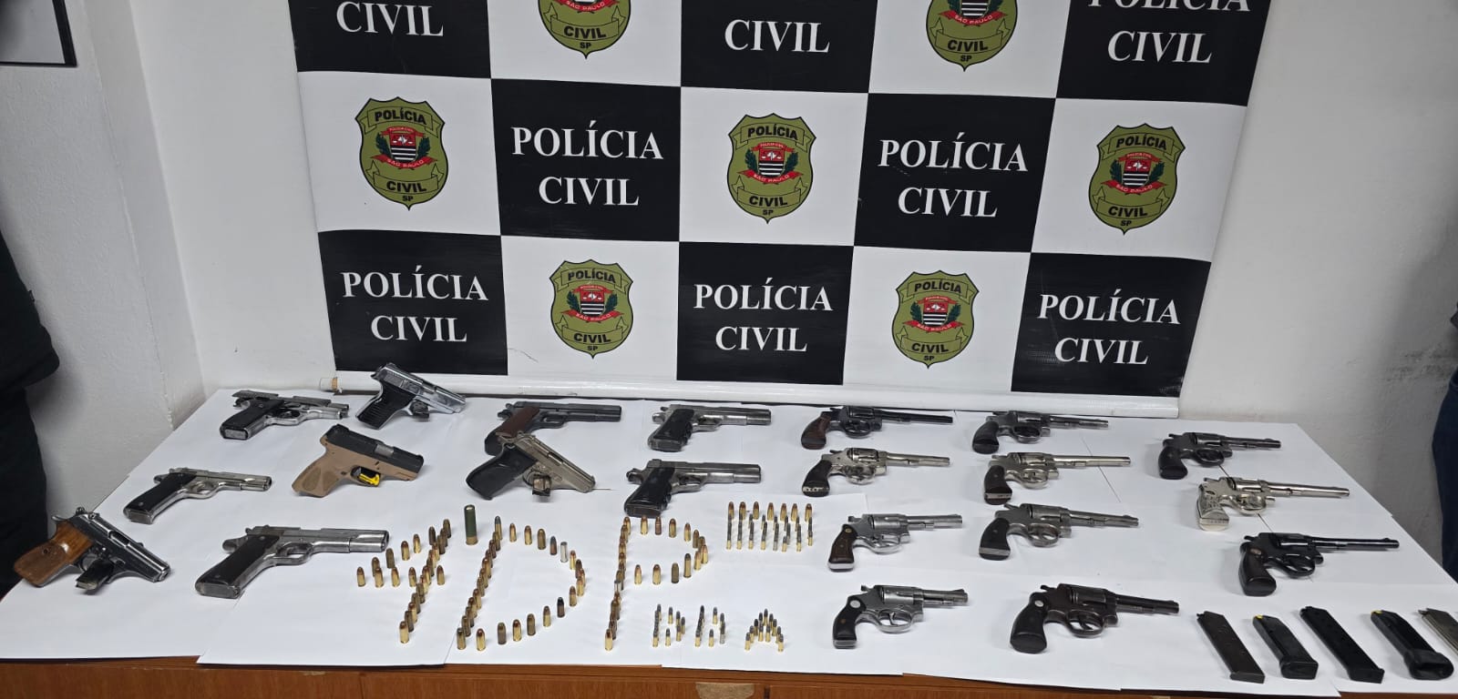 Os agentes foram até a casa e localizaram 20 armas de fogo, sendo 11 revólveres e 9 pistolas, além de  146 projéteis.