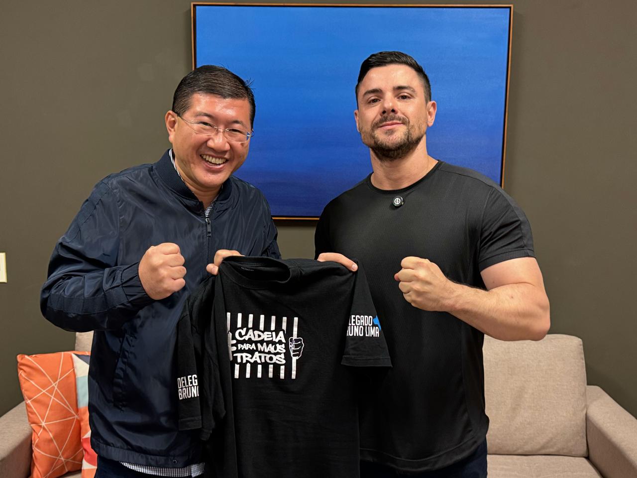 O prefeito de Diadema, Taka Yamauchi, recebeu em seu gabinete, nesta segunda-feira (30), o deputado federal Delegado Bruno Lima, um dos principais defensores da causa animal no país.