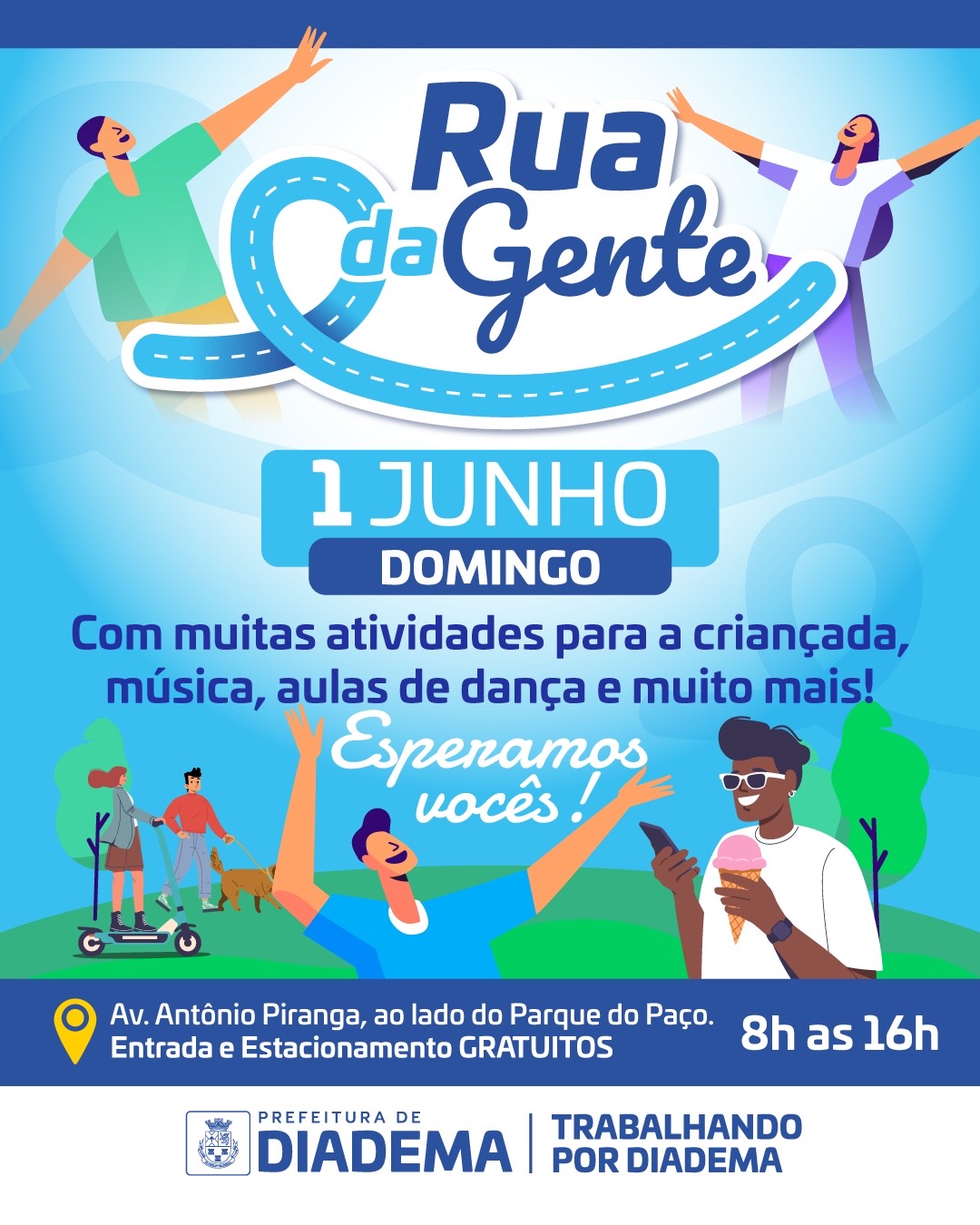 Visando oferecer mais opções de divertimento, lazer e recreação, para todas as idades, a Prefeitura de Diadema oferece mais uma edição do Projeto Rua da Gente, neste domingo, 1º de junho, das 10h às 16h.