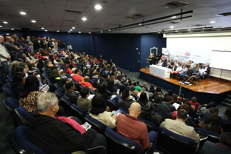 A população da região Central de Diadema lotou na noite desta quarta-feira (9) o auditório do Quarteirão da Saúde durante a terceira plenária do Bora Participar. Mais de 350 pessoas acompanharam a prestação de contas sobre as principais realizações da gestão e, quem quis, pode apresentar suas demandas, que foram respondidas pelos secretários.