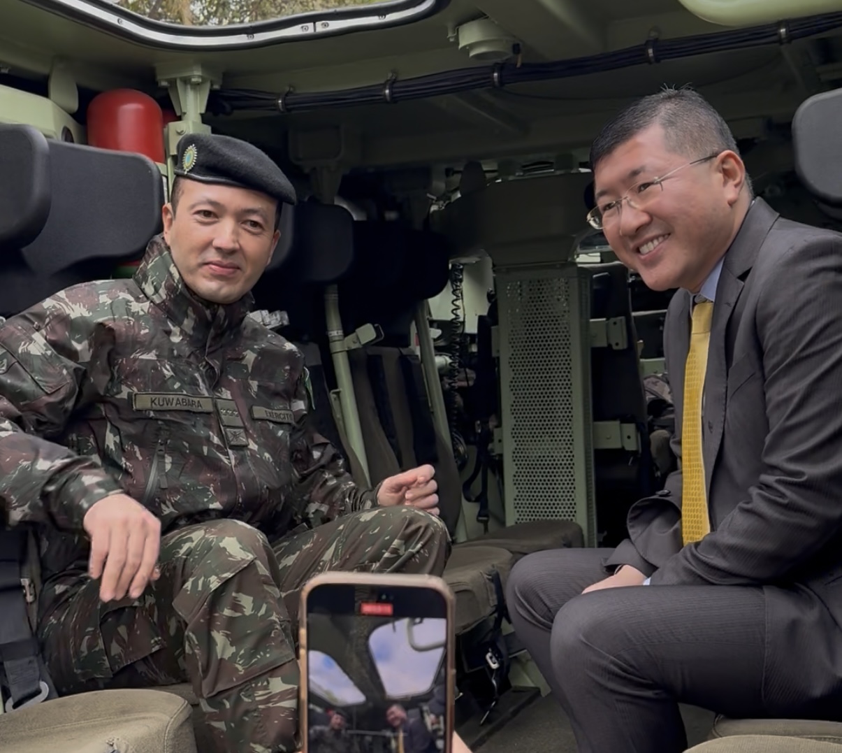 O prefeito reforçou a relação com as forças de segurança. Nesta quarta, em parceria com o exército, houve o batismo do blindado Guarani que recebeu o nome “Diadema”.