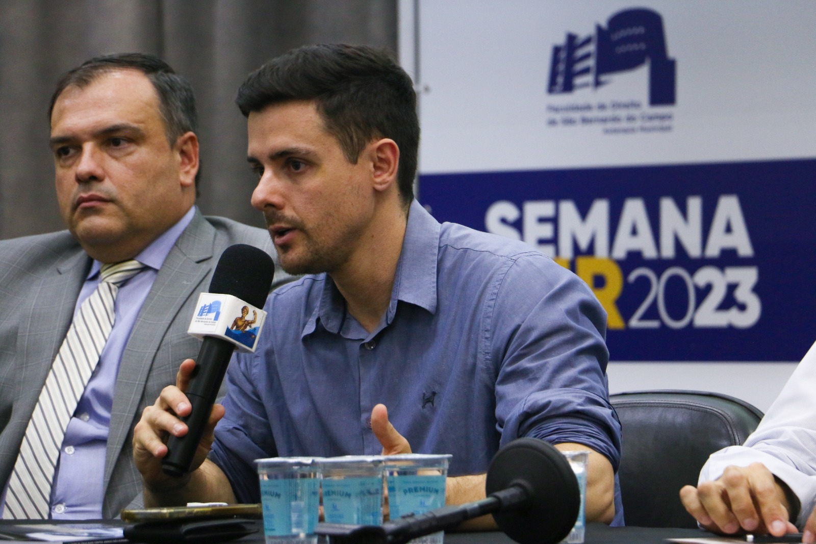 O deputado federal Delegado Bruno Lima encerrou a programação desta quarta-feira (23) da 23ª Semana Jurídica da Faculdade de Direito de São Bernardo do Campo (FDSBC). Conhecido por sua dedicação à causa animal e ao serviço público, o delegado de Polícia Civil palestrou com o Anfiteatro “Prof. Dr. Paulo Teixeira de Camargo” repleto de espectadores ansiosos por ouvir suas perspectivas sobre “Proteção e Direitos dos Animais”.