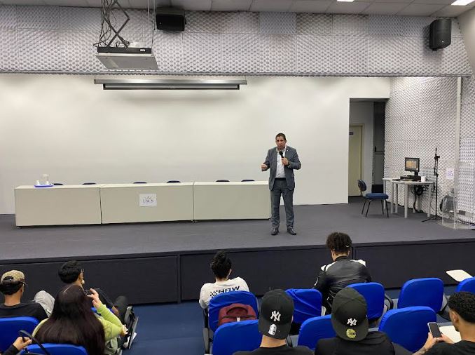 O profissional esteve na universidade proferindo a palestra “Desafios e Responsabilidades da Vida Executiva em Grandes Corporações”, atividade que faz parte da Semana de Administração e Ciências Contábeis da USCS, que acontece até esta quinta-feira (18), com palestras destinadas a alunos da Escola de Negócios.