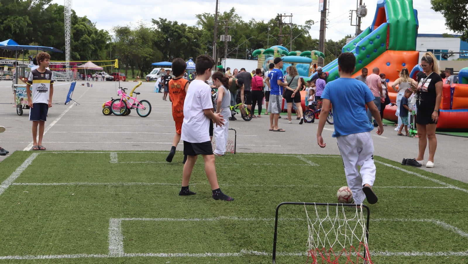 Entre as atrações estão a ‘bike família’, na qual duas pessoas pedalam a mesma bicicleta. No local também estarão montadas miniquadras para a prática de futebol, peteca, tênis e vôlei. A criançada também poderá se divertir no tobogã inflável e na cama elástica. Todas as brincadeiras são gratuitas.