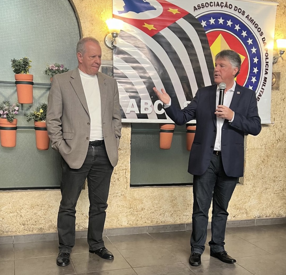 O pré-candidato a prefeito de Santo André, Edson Sardano (Novo), participou nesta quinta (18) do almoço da Associação dos Amigos da PM do ABC no restaurante Fonte Leone em Santo André. Entidade presidida por Marigildo Fabretti.