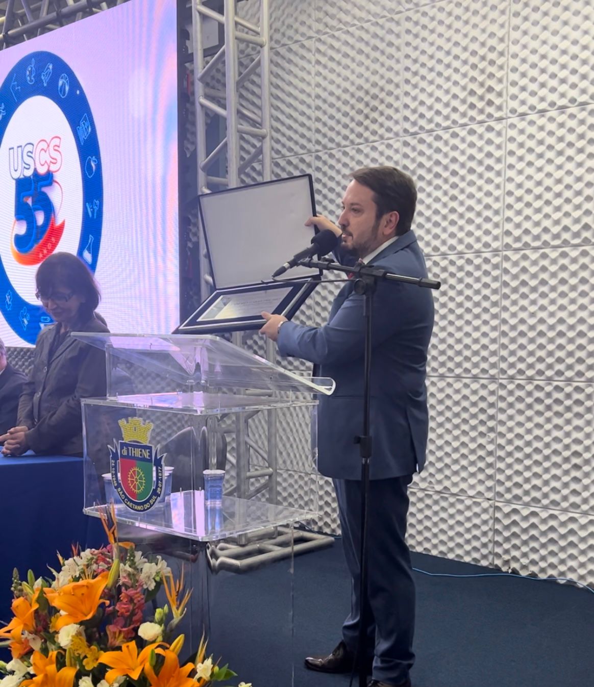 O reitor da USCS, Leandro Prearo, recebeu o título de cidadão em São Caetano na noite desta quinta-feira (3).