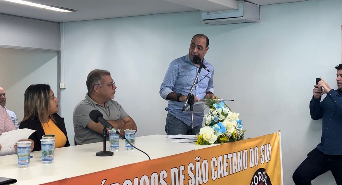 Durante discurso na posse de Aparecido Inácio da Silva, o Cidão do Sindicato, Auricchio pediu mobilização da sociedade civil organizada, especialmente do sindicato para revisar a taxa de juros.