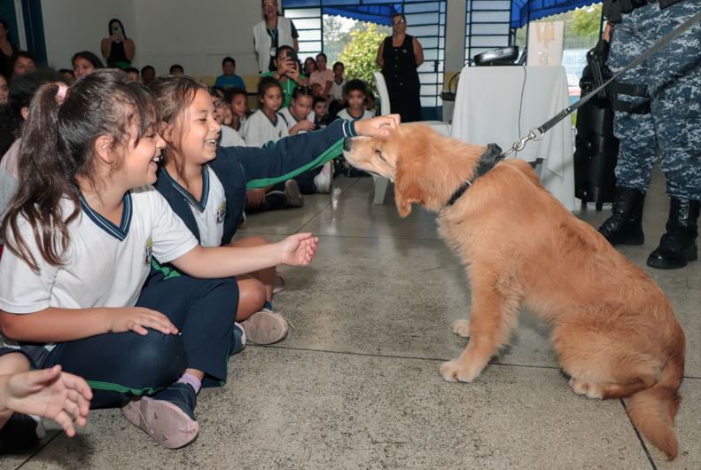 Recém-chegado à GCM (Guarda Civil Municipal) de Ribeirão Pires, o cão Urso, um Golden Retriever de seis meses, foi apresentado aos alunos da EM (Escola Municipal) Yoshihiko Narita, na manhã desta sexta-feira (1). A visita faz parte de atividade de integração realizada pelos agentes de segurança municipais nas escolas da rede da Estância.