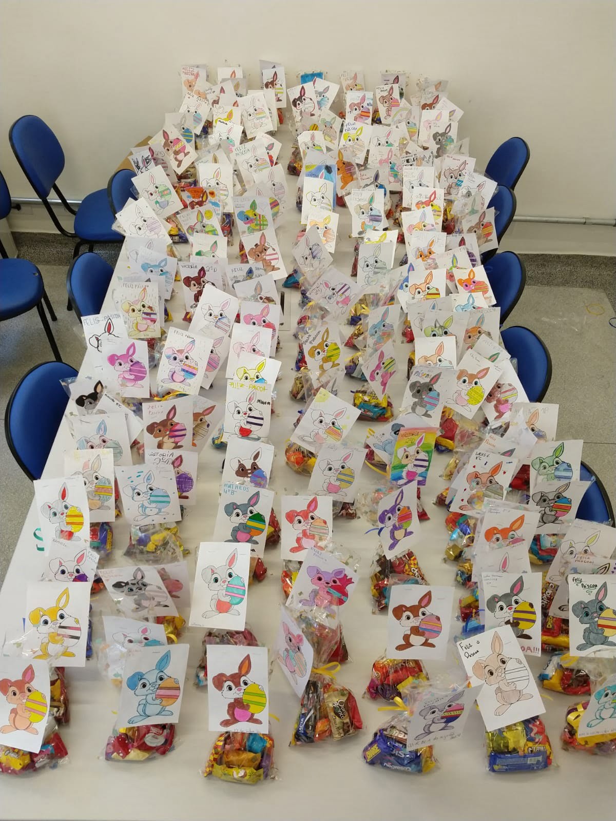 Eles prepararam kits de chocolates para doarem a uma instituição beneficente de São Caetano. Cada embrulho de guloseimas foi acompanhado de um cartão, preparado com muito carinho. Alunos, professores e funcionários envolveram-se na ação, que faz parte da Gincana do Bem, evento solidário que acontece todos os anos na escola.