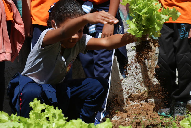 “Fazer a horta foi muito legal, porque a gente aprendeu sobre o ciclo da vida, a gente plantou, cuidou, colheu e agora vamos comer. É um momento de união e muito mais legal do que só aprender dentro da sala, com a lousa.” A fala empolgada foi da estudante do 3º ano da Emeb Professora Zilda Gomes dos Reis de Almeida, Ester da Silva Oliveira, 9 anos, que participou eesra semana da colheita da horta que existe na escola. O cultivo de hortas nas escolas faz parte do macrocampo meio ambiente do programa de ensino integral Mais Educação, que atende 3.200 estudantes da rede municipal.