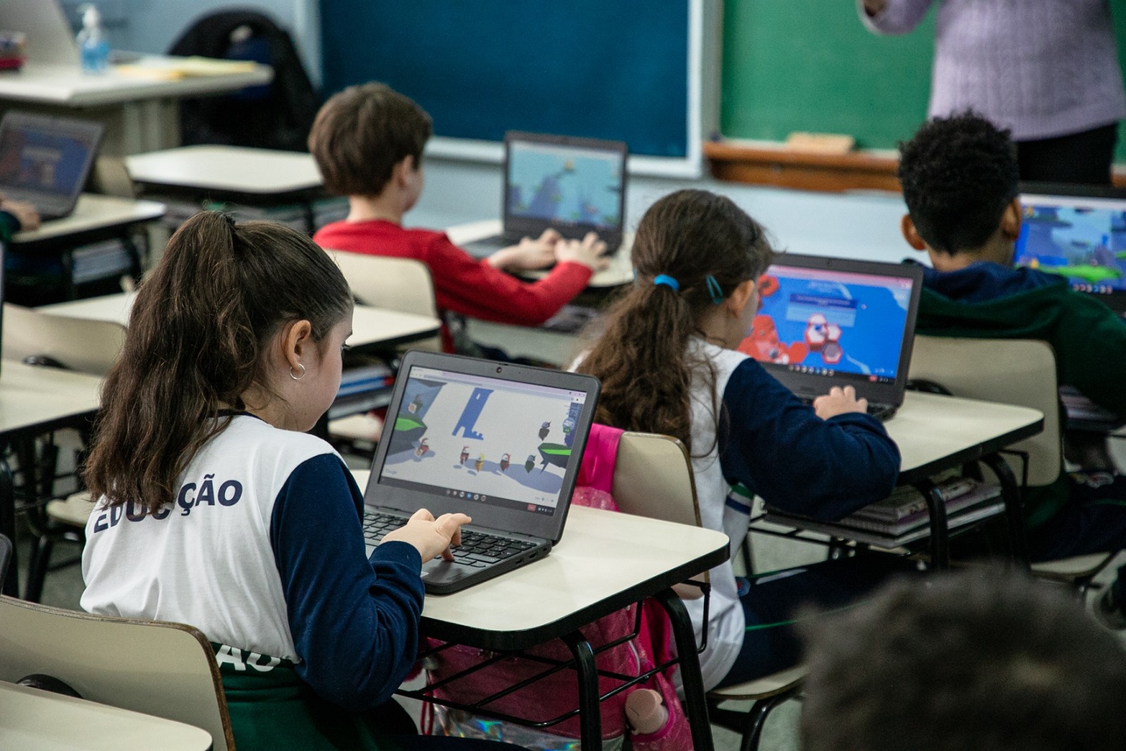 Foram adquiridos chromebooks para todas as escolas e equipes gestoras da rede municipal, além de lousas digitais com softwares pedagógicos 3D. A iniciativa é pioneira na educação pública da região.