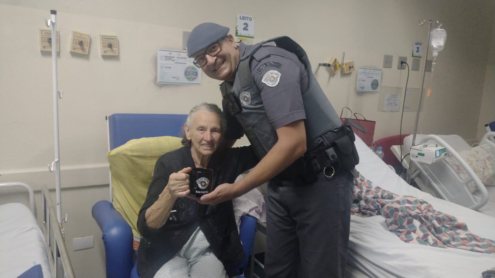 A visita foi no último dia 15. Nesta semana eles voltaram ao hospital e levaram um presente para ela. “Torcemos para que ela fique boa logo e possa voltar para casa o quanto antes”, disse a cabo Juliana, policial militar há 10 anos. Dona Santina passará por um procedimento cirúrgico nesta quarta-feira (23).
