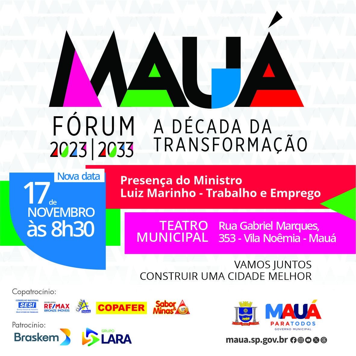 O Fórum Mauá 2023/2033 é um ciclo de debates que vai identificar iniciativas de desenvolvimento para a cidade, de acordo com a perspectiva da política nacional, nos eixos Econômico, Social, Ambiental e Governança.