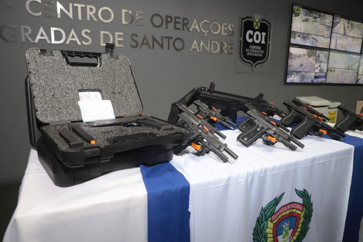 A Guarda Civil Municipal (GCM) de Santo André recebeu 50 novas pistolas, uma carabina semiautomática e uma espingarda que passam a incorporar o armamento da corporação e vão reforçar as ações de segurança no combate à criminalidade. A entrega foi realizada nesta terça-feira (25) no Centro de Operações Integradas (COI).
