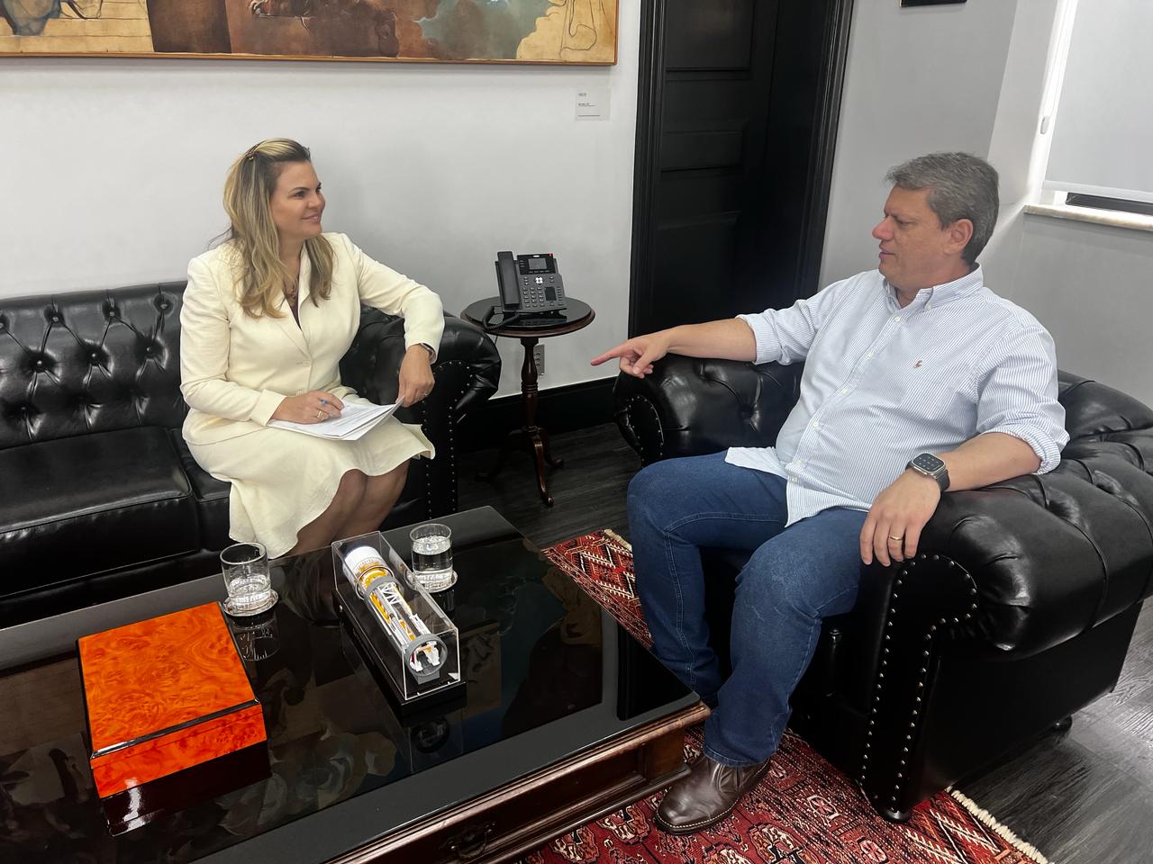 Durante a audiência com o governador Tarcísio de Freitas, a deputada Carla Morando também